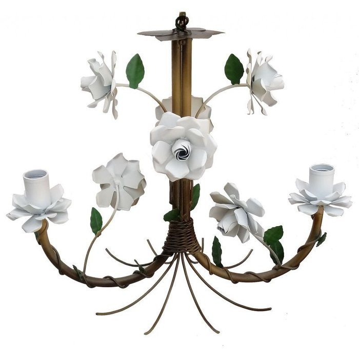 Luminária de Ferro Artesanal Rustica com Flores Pequena para Salinha de Jantar - Branco Branco