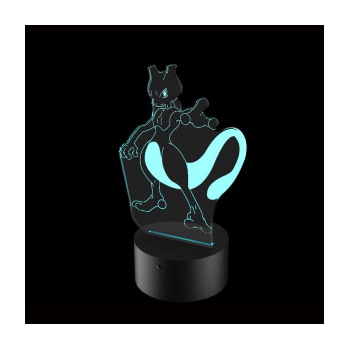 Mewtwo também faz parte dos cinco Pokémons lendários junto com Zapdos, Moltres, Articuno e Mew. Ele possui habilidades psíquicas e ataques fortes, sendo um dos personagens mais almejados entre os jogares que gostam de colecionar títulos. A luminária é fabricada em acrílico transparente e possui 16 cores que são alternadas pelo controle remoto, também conta com 4 efeitos de iluminação. Sua base é branca.