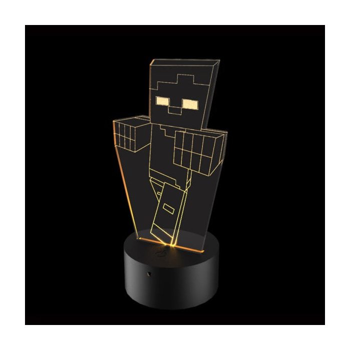 O zumbi do jogo Minecraft agora em forma de luminária! Para criar ambientes descontraídos e divertidos, principalmente para enfeitar o quarto de quem é fã deste game. A luminária é fabricada em acrílico transparente e possui 16 cores que podem ser alternadas com o controle remoto, além de 4 efeitos de iluminação. Também acompanha base.