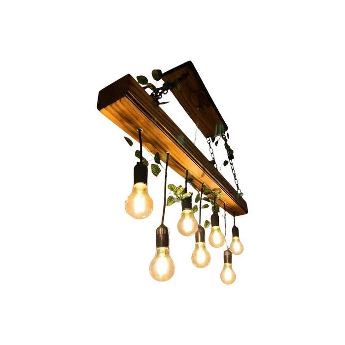 Luminária de Madeira Rústica 7 Pendentes – Estilo Industrial para Sala e Cozinha