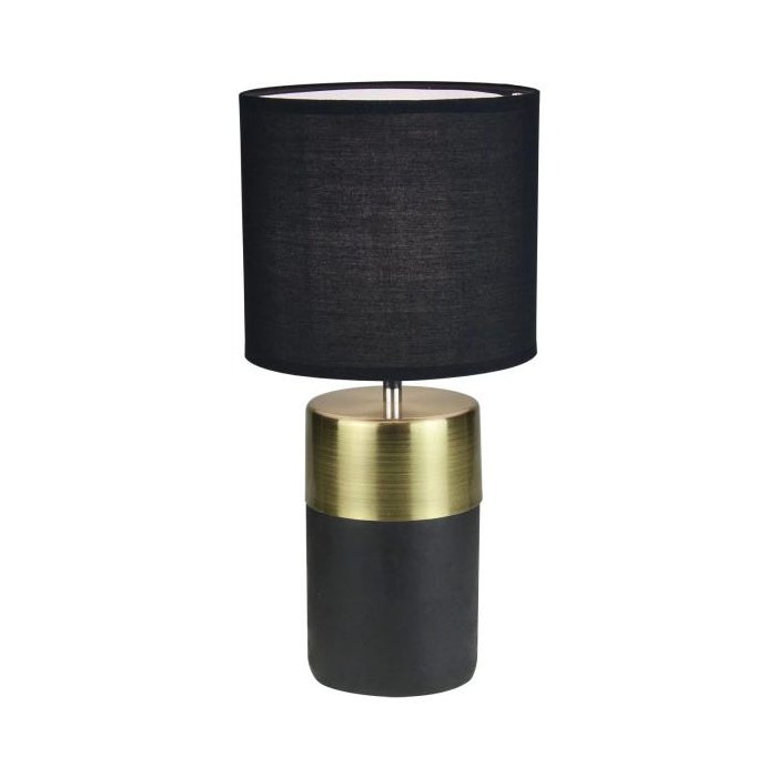Luminaria De Mesa Abajur Concreto Preto e Dourado 1E27 37CM QAB1374DO Quality Especificações: Estrutura em concreto preto com acabamento em metal dourado e cúpula de tecido preto Lâmpada: 1 x E27 (Não Inclusa) Potência: 40W Dimensões: Ø18 x A37 cm REF: QAB1374DO Cabo com Interruptor