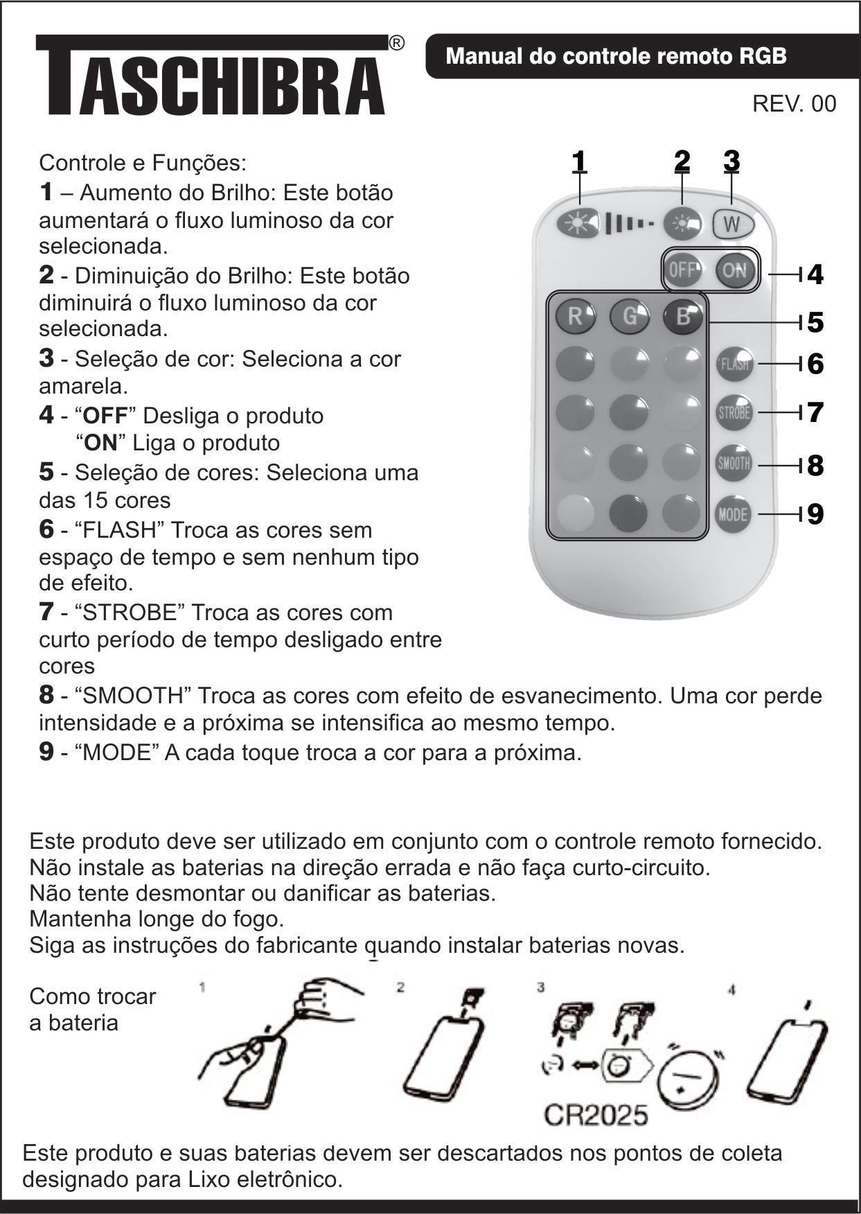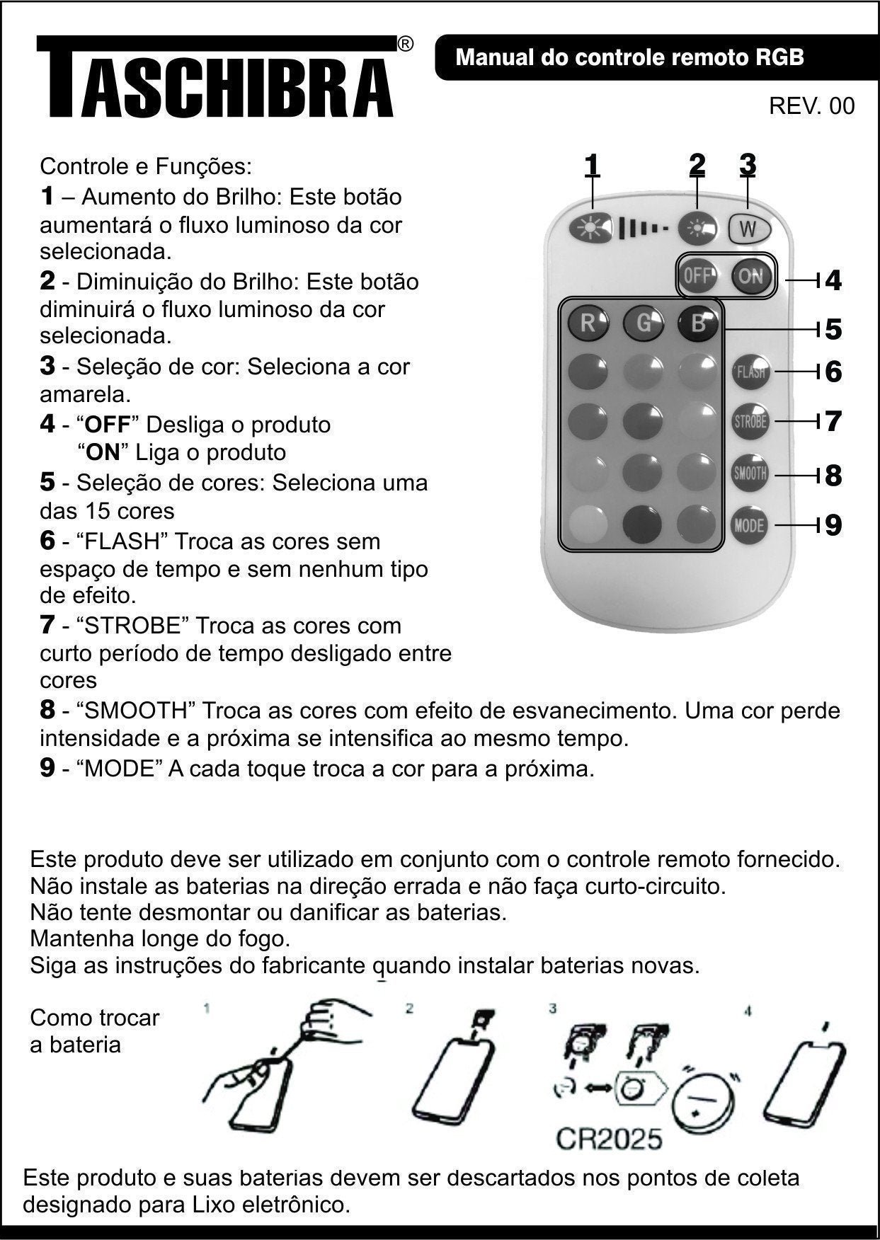 | Informações Complementares (Novo) | Botão liga/desliga e mudança de cores no controle remoto |