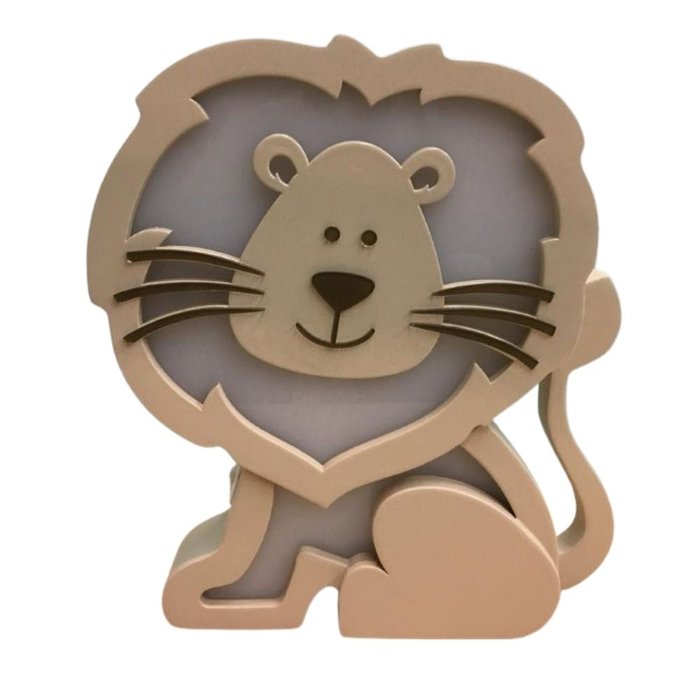 Coloque essa linda luminária / abajur de leão para decorar e iluminar o quarto do bebê e da criança. Ela é produzida em madeira laqueada, 100% MDF, com luz de Led e utiliza acrílico na parte iluminada.