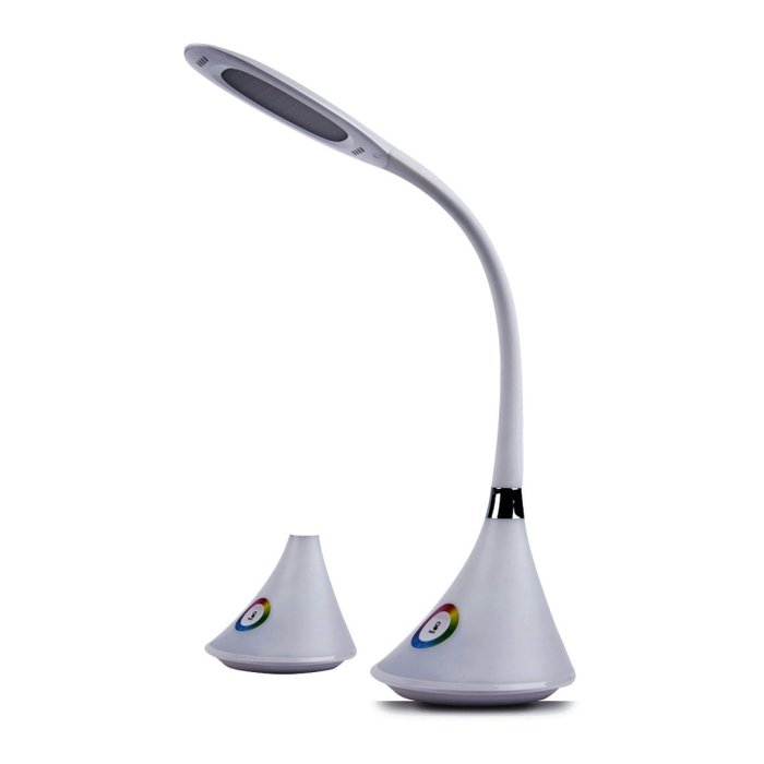 Luminária em LED integrado, associa tecnologia e design para momentos relaxantes, com intensidade luz ajustável, possui um Touch dimerizável e visor RGB. A luminária permite além da dimerização da intensidade de luz, a utilização do visor para momentos relaxantes e luz noturna. Possui cabo flexível e acompanha fonte USB e fio.