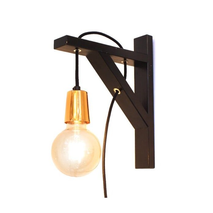 Luminária de Parede Arandela com Pintura Artesanal Preta em Madeira com Fio Tecido para 1 Lâmpada E27 - ARANCREATE-PTCO. **Lâmpada não inclusa. Medidas: C: 24cm x A: 30cm x L 4,5cm. Material: Madeira, fio com tecido marrom, plástico, alumínio. Fabricante: Hunter Trade.