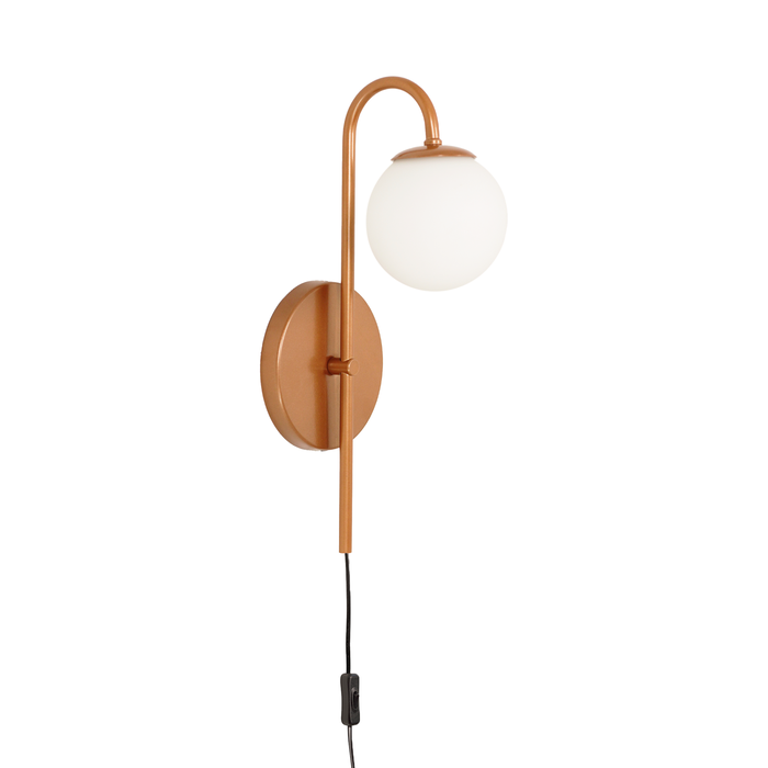 Luminária de Parede Jabuticaba Interruptor Globo Vidro Cobre