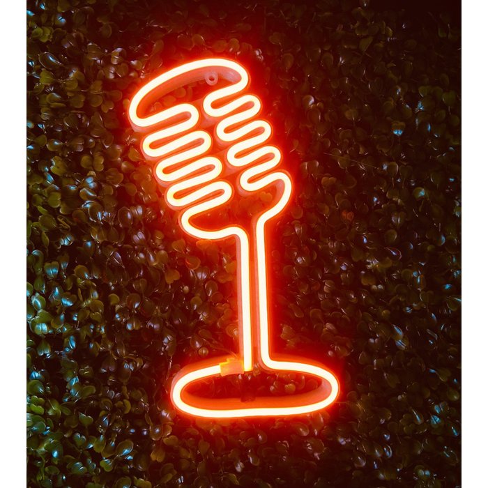 Luminária de Parede Microfone Neon Led Laranja 26cm 3D Gold Print