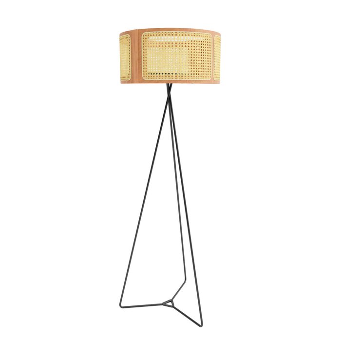 Luminária de Piso Base Metal Preto Cúpula Redonda Suíça Palhinha