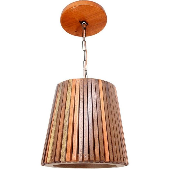 Luminária De Teto Pendente Em Madeira Pequeno Redonda 1,5m