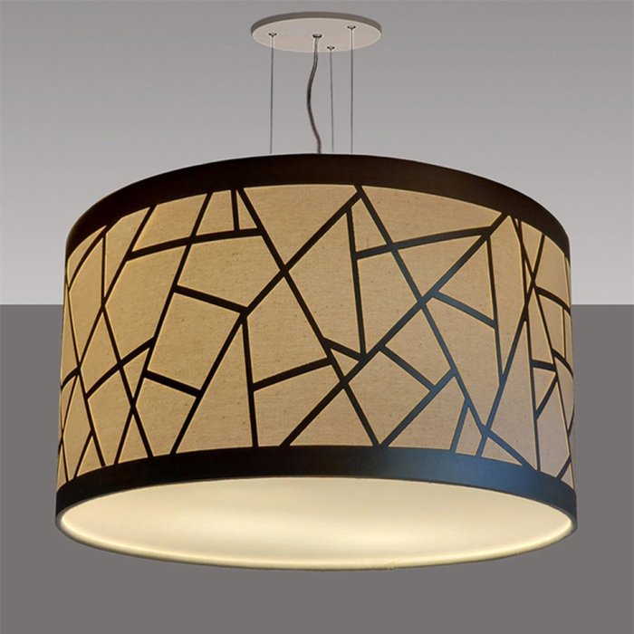 Cúpula cilíndrica com acabamento em tecido ALGODÃO, com aplicação de recorte em laminado PET flexível na cor BRONZE;
