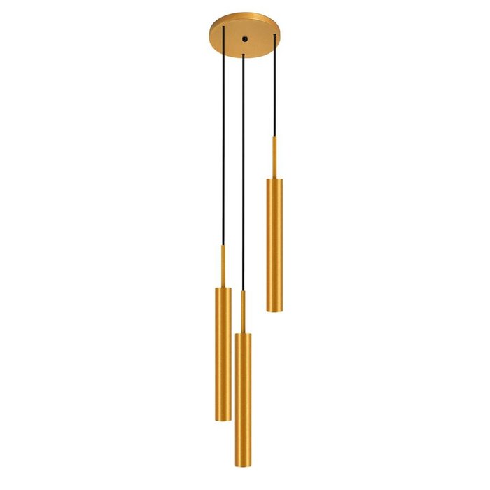 Luminária de Teto Pendente Tubo Triplo Sala Lavabo Dourado Dourado