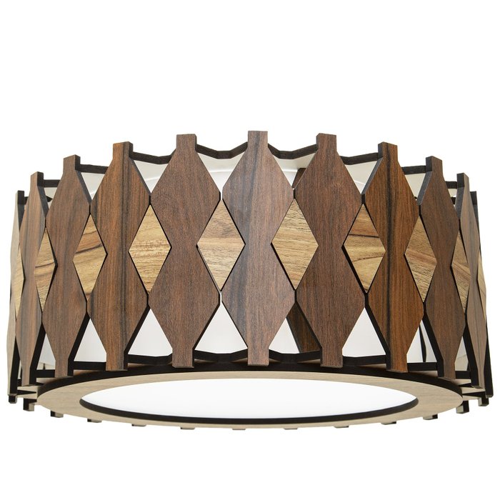 Luminária Decorativa Madeira Plafon Redondo Guarapari 25cm Marron Pau Ferro com detalhes em Nogueira