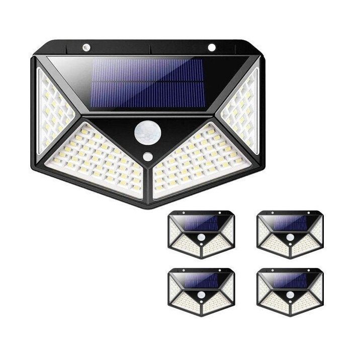 Luminária Energia Solar Parede Kit 5 Unidades 100 LED 3 Funções Lâmpada Sensor Presença