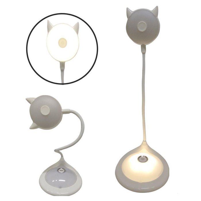 Luminaria Gato Abajur Led Pet Touch Flexivel Estudos Home Branco