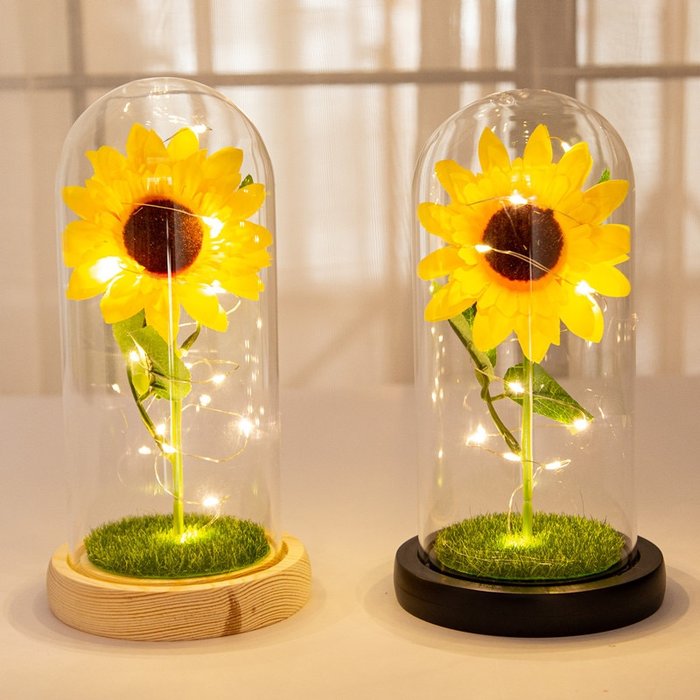 Luminária Girassol eterno flor imortal A Bela E A Fera Cúpula de vidro Presente de dia das mães Pres