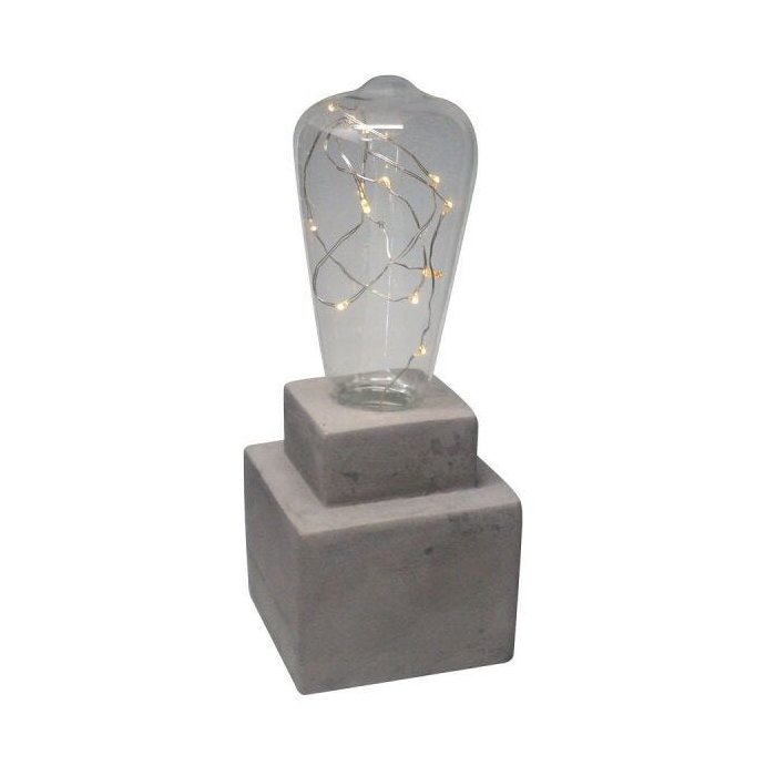 Luminária moderna e em estilo industrial. É uma peça cheia de design, completa qualquer tipo de decoração e combina com todos os ambientes. - Cor: Cinza; - Material: Cimento, vidro e LED; - Dimensões (AxLxP): 5,5x11,5x11,5cm; - Acompanha fio de mini leds envolto por vidro em formato de lâmpada em estilo industrial, aceso por pilhas; - Prazo para despacho: 3 dias úteis;