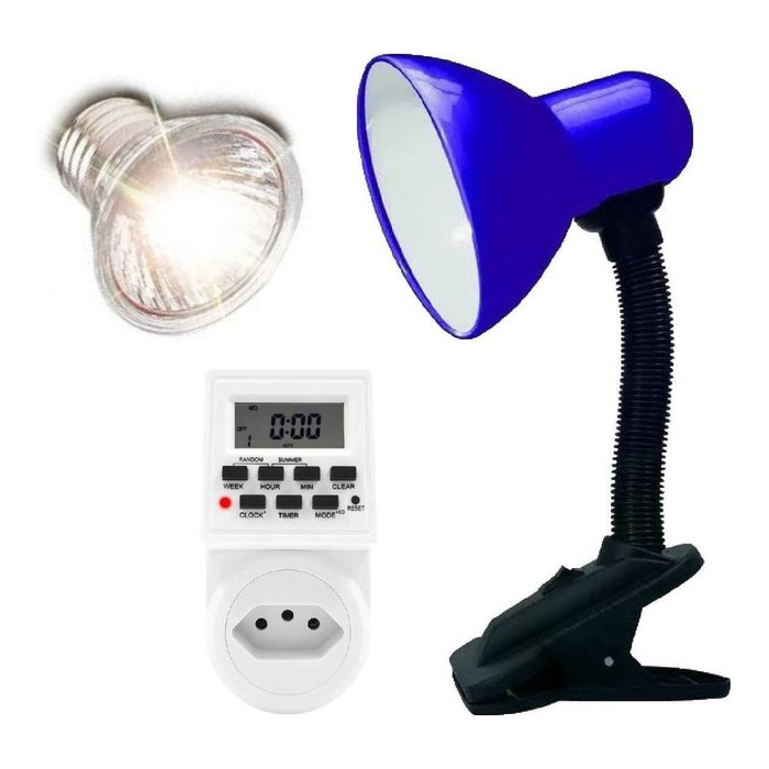 Luminária + Lâmpada Uva Uvb 3.0 110v 220v + Temporizador Dig Repteis