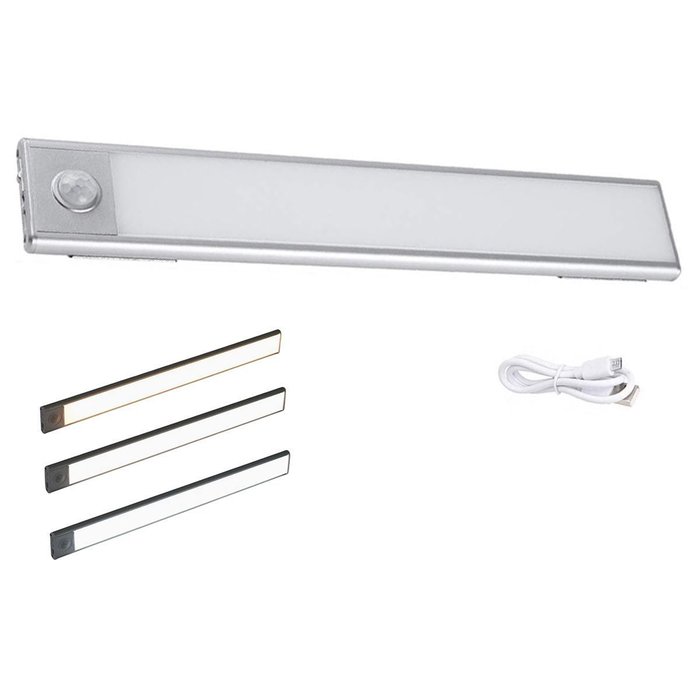 Luminaria Led 3 Tons Sensor Movimento Presença 3 Modos Bateria Recarregavel Usb Iluminaçao Sala Quar Branco e Cinza