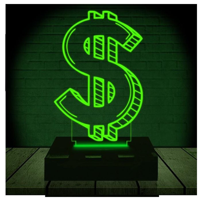 Luminária Led 3d | Cifrão Real Dinheiro | Abajur