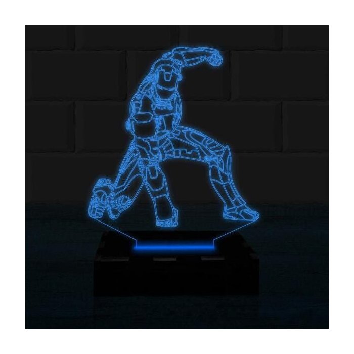 Luminária Led 3D Homem De Ferro Herói 5 - Azul