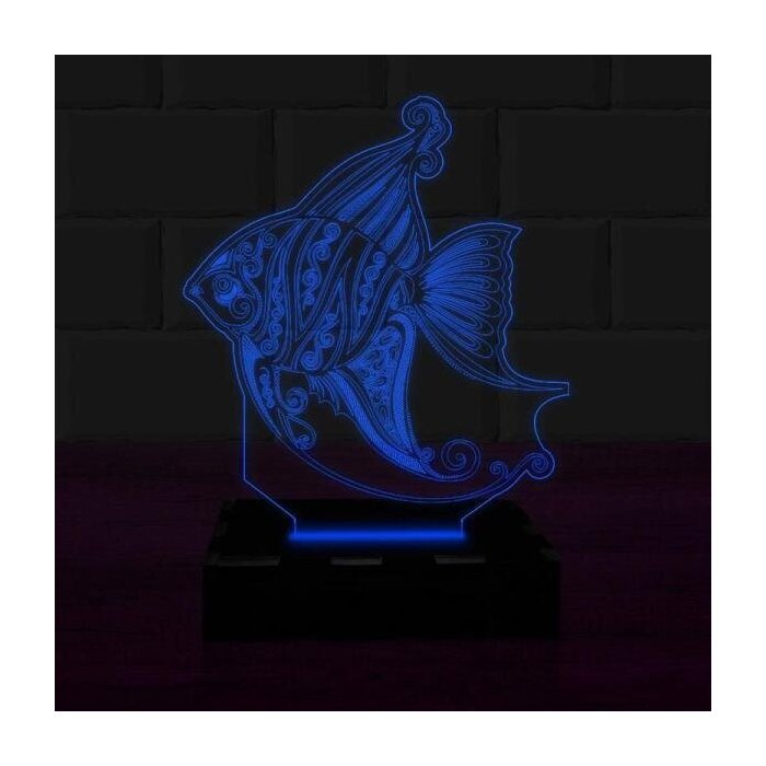 Luminária Led 3D Peixes Abajur 3 - Azul