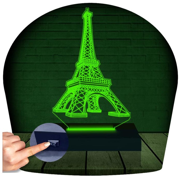 Luminária Led 3d Torre Eiffel Abajur 2 Verde
