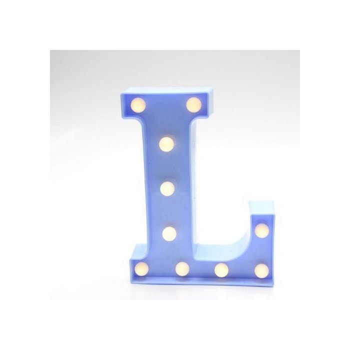 Luminária Led Letra L. As Luminárias de Led Decorativas são a grande novidade em decoração na atualidade, com certeza a decoração vai ficar ainda mais linda com essa luminária, além do design ela possui função de economia de energia. Disponível na cor: Azul e Branca. Aplicações como: Apoiadas sobre a mesa, penduradas na parede ou em algum painel. Alimentação: Produto funciona através de pilhas AA. Pode ser utilizada com pilhas recarregáveis, não inclusas. Dimensões Aproximadas: 22 x 17 x 4,5cm (altura x largura x profundidade) Características Gerais: Produzidas em plástico injetado e Componentes Eletrônicos. Obs As luzes de Led podem variar de acordo com o lote em estoque. Veja o tamanho: