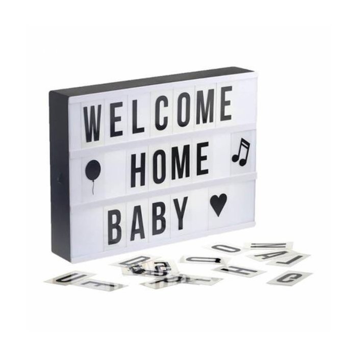 Luminária Letreiro Led Light Box Cinema Com 95 Letras Preto e Branco com letras pretas