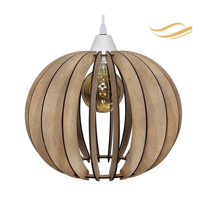 Luminária Lustre Pendente Madeira Sala Jantar Cozinha Balcão 20H Crú/Fio Branco
