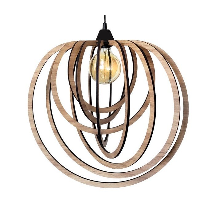 Luminária Lustre Pendente Bivolt E27 Sala Cozinha Mesa Jantar Moderno Circular Grande Carvalho.