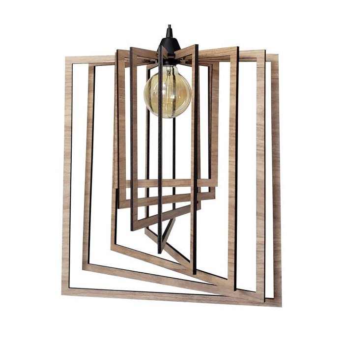 Luminária Lustre Pendente Bivolt E27 Sala Cozinha Mesa Jantar Moderno Retangular Grande Carvalho.