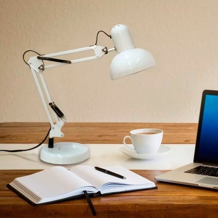 Luminária Mesa Articulável Retrô Vintage Estudo Leitura Branca Base e Garra LM1754