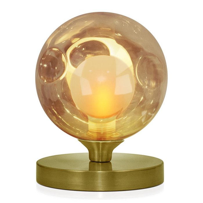 Luminária mesa TOUCH Globo Harmony Ambar Base Redonda Dourad Dourado