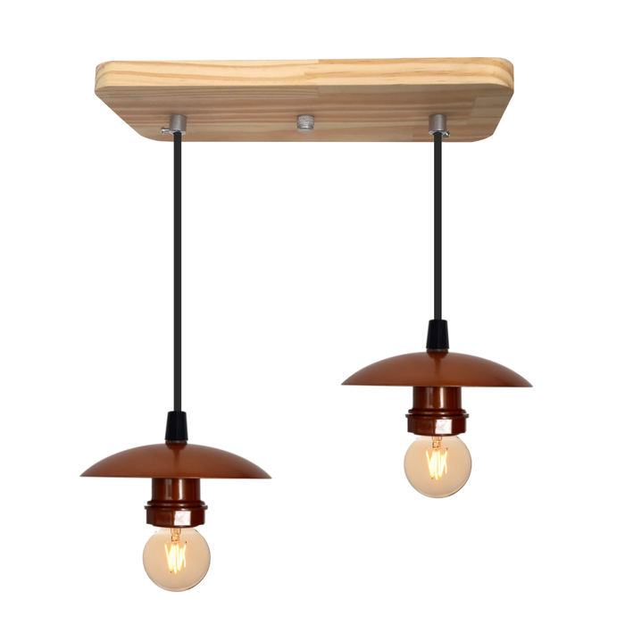 Luminária Pendente Bocal Simples Suporte Madeira Pinus – Soquete E-27 – Abf Luminárias:cobre Terra