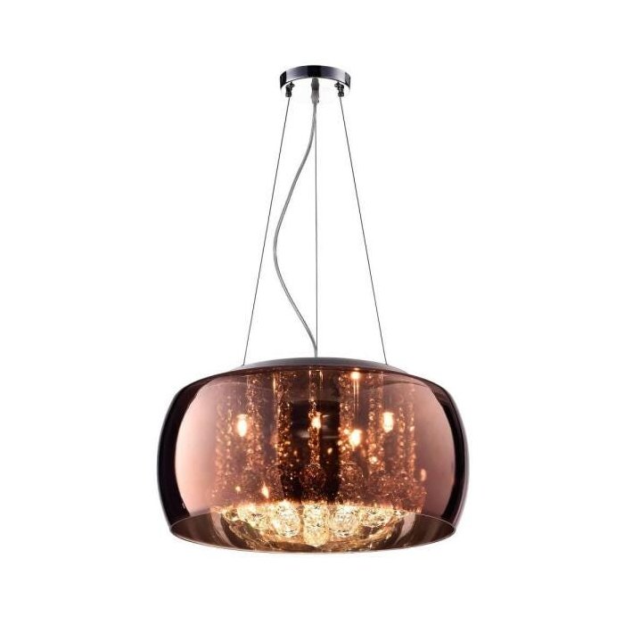 Lustre Pendente Cristal e Vidro Cobre - 40 cm com Lâmpada Led.