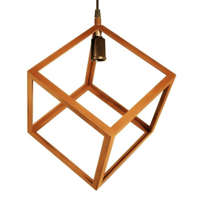 Luminária Pendente Cubo Aramado de Madeira Caramelo - Soq: E27 / Tam: 20x20cm