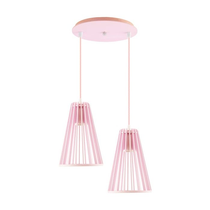 Luminária Pendente Duplo Madeira Koni 20cm CR Soquete E27 Rosa Claro Rosa Claro