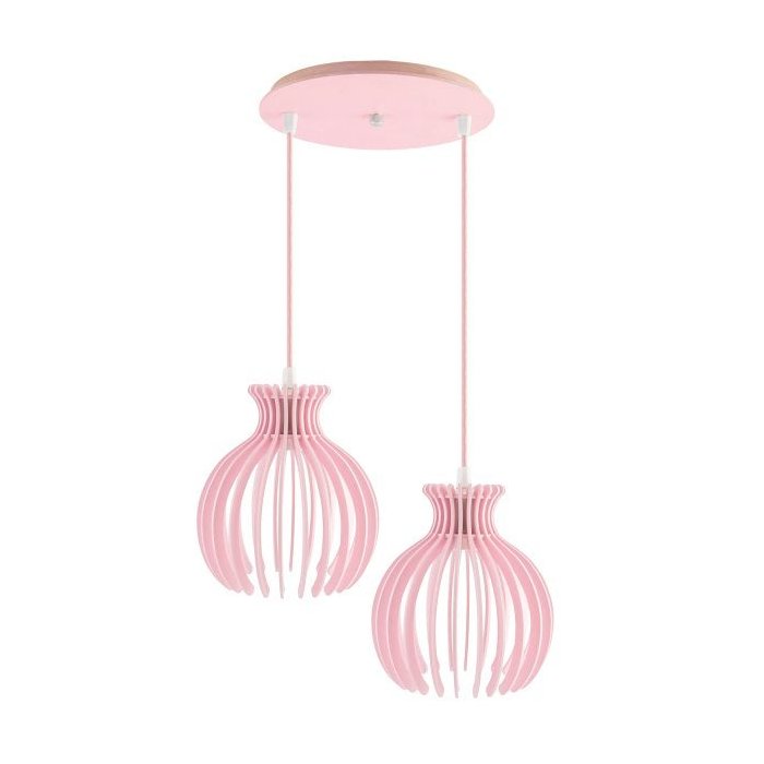 Luminária Pendente Duplo Madeira Nacar 18cm CR Soquete E27 Rosa Claro