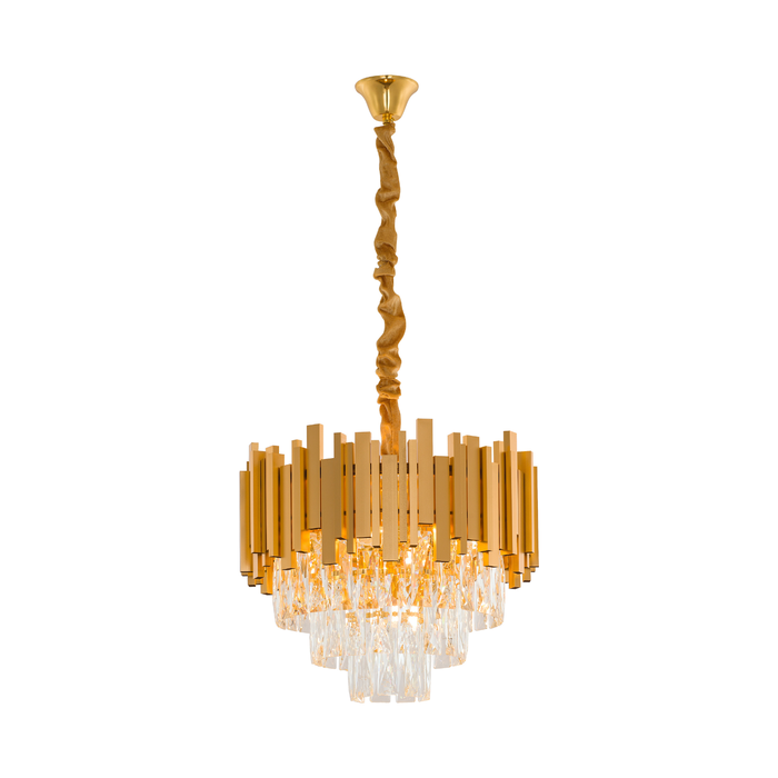 Luminária Pendente Lustre Luxuoso Dourado e Cristais Vana Sindora Inl102