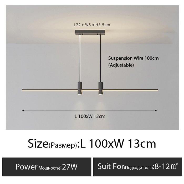 Luminária Pendente Sala de jantar lustre simples e moderno e minimalista linhas nordic mesa jantar - B Style-100cm-black