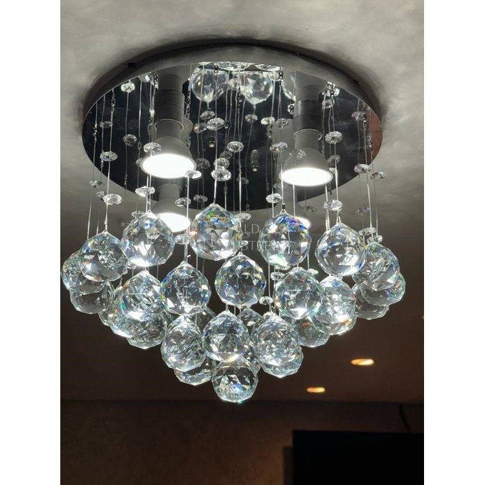 * Base de inox espelhado 30cm de diâmetro com acabamento a laser.* Castanhas de cristal de 14mm.* Modelo para 04 Lâmpadas GU10 (Lâmpadas não inclusas )* Direto da fábrica para seu ambiente