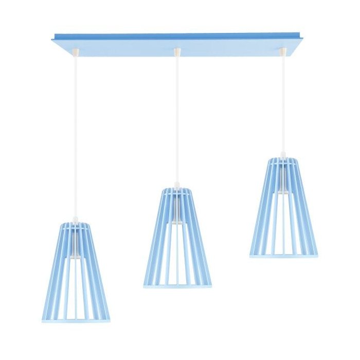 Luminária Pendente Triplo Madeira Koni 20cm CQ Soquete E27 Azul Claro Azul Claro