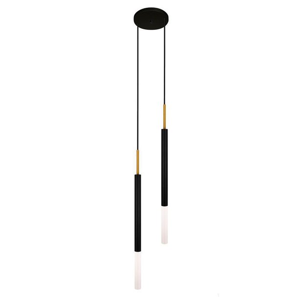 Luminária Pendente Tubo Duplo Difusor Lavabo Preto Dourado Preto