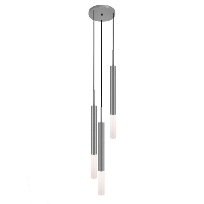 Luminária Pendente Tubo Teto Triplo Difusor Cozinha Prata Prateado