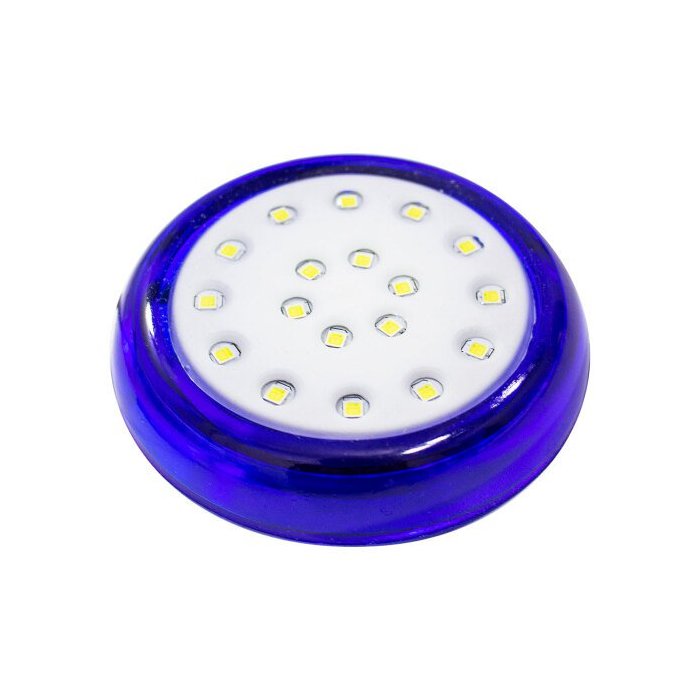 * LED DE PISCINA 18W LUZ BRANCO FRIO 6500K *O LED para piscina 18w proporciona excelente iluminação para sua piscina, a luz BRANCO FRIO torna seu banho de piscina mais relaxante e tranquilo, é indicada para uma área de até 12 metros quadrados, pode ser instalado em qualquer tipo de piscina fibra, vinil ou azulejo através de uma luva de 1/2". Utiliza uma fonte 12V 2A NÃO inclusa no produto.Um produto com a qualidade STARLUMEN !!!** ESPECIFICAÇÕES TÉCNICAS **- Luminária de LED- Material: Policarbonato- Potência: 18 Watts- Vida útil aproximada: 25 mil horas- Voltagem: 12 V - Dimensões: 8 cm de diâmetro x 3 cm de profundidade- Cores do Acabamento: AZUL- Cor da Luz: Branco Frio 6500K- Instalação: Rosca 1/2"** ITENS INCLUSOS **- 01 LUMINÁRIA LED PARA PISCINA (CÓD. 50036 AZUL)
