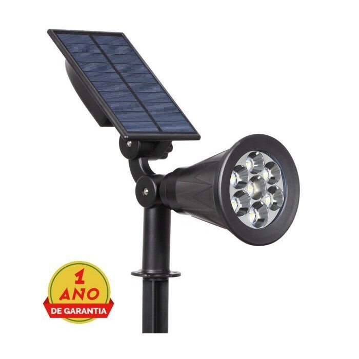 Funciona totalmente com a energia do sol e ainda dispensa a instalação de fios. Basta fixar no gramado com a estaca que acompanha o produto, ou parafusar no local desejado usando o suporte (incluso)