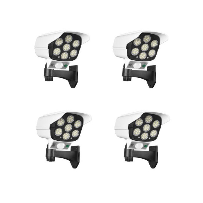 Luminária Solar Câmera 4 Unidades Dummy Sensor de Proximidade Falsa 77 Leds 3 Funções 30W