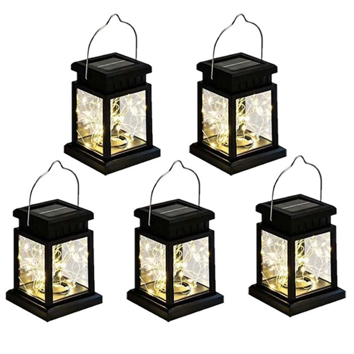 Luminaria Solar Lampiao Led Kit 5 Uni Decoraçao Casa Natal Festa Iluminaçao Led Lanterna Lual Evento Preto