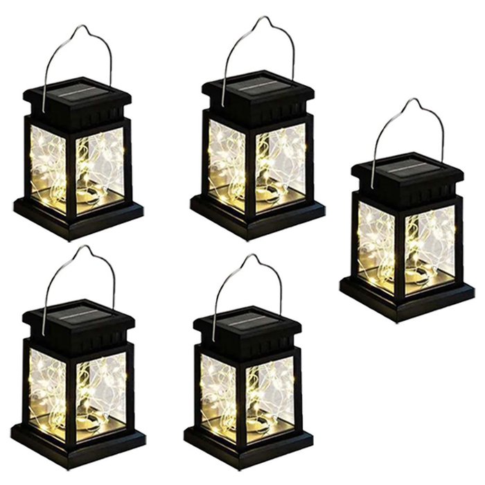 Luminaria Solar Lampiao Led Kit 5 Uni Pendurar Reistente Iluminaçao Decoraçao Rua Casa Varanda Praia Preto