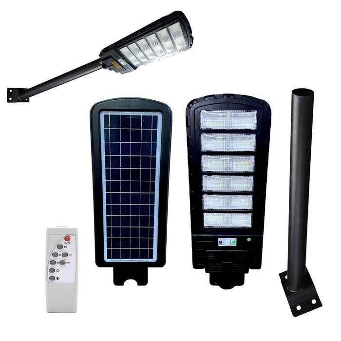 Luminaria Solar Poste 600w Led Kit Suporte Haste Refletor Sensor Presença Movimento Controle Ilumina Preto
